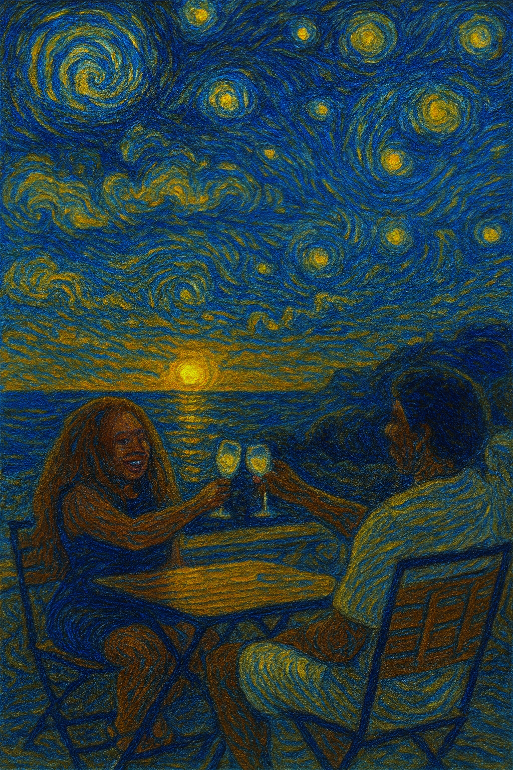 This isn’t just dinner — it’s a New Year’s Eve celebration. Think: electric energy, glowing cocktails, the sea breeze, and Syd’s signature “on the cliffs” magic as we count down to midnight.